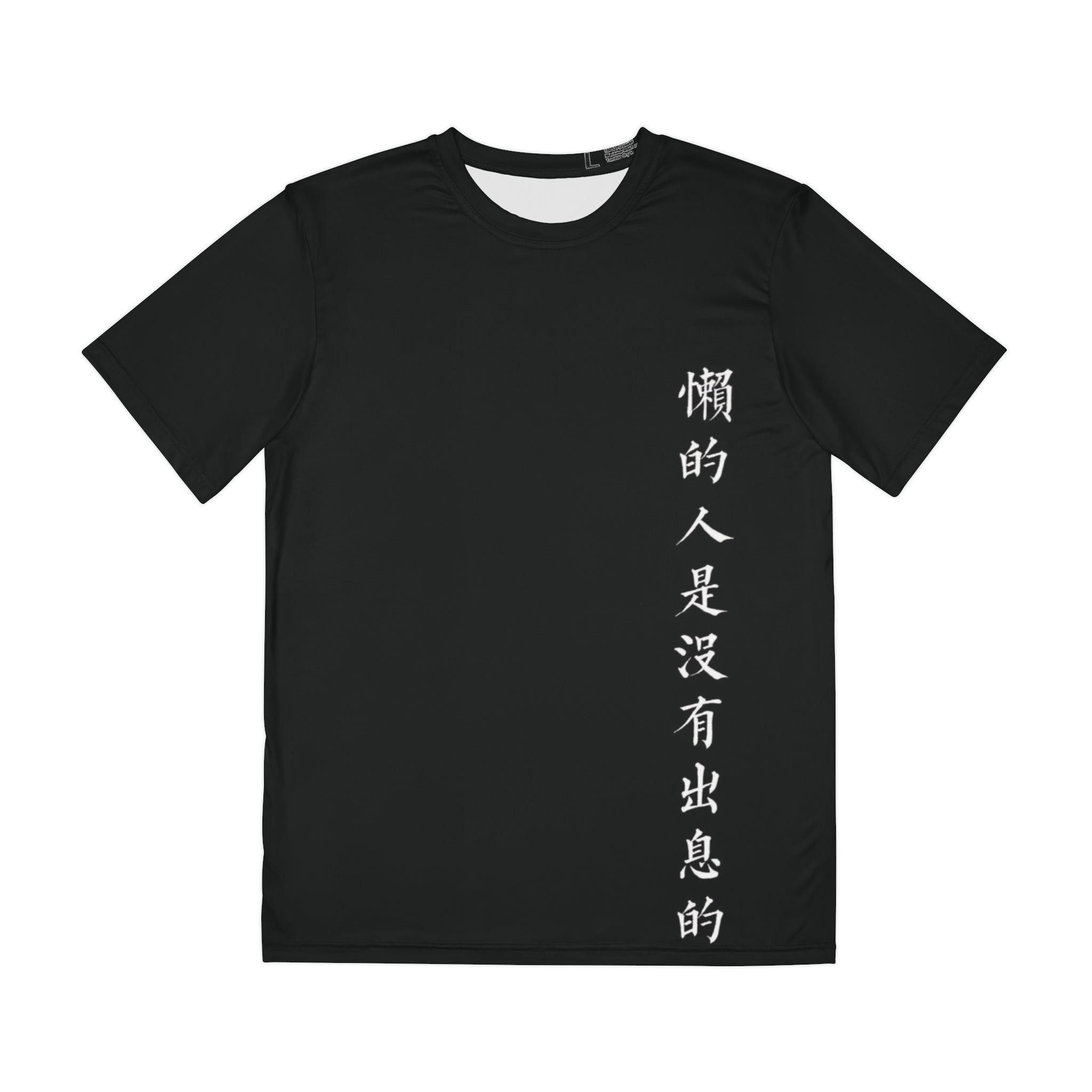 Men's Black Tee with Vertical Chinese Script — '懒的人是没有出息的' Casual Streetwear